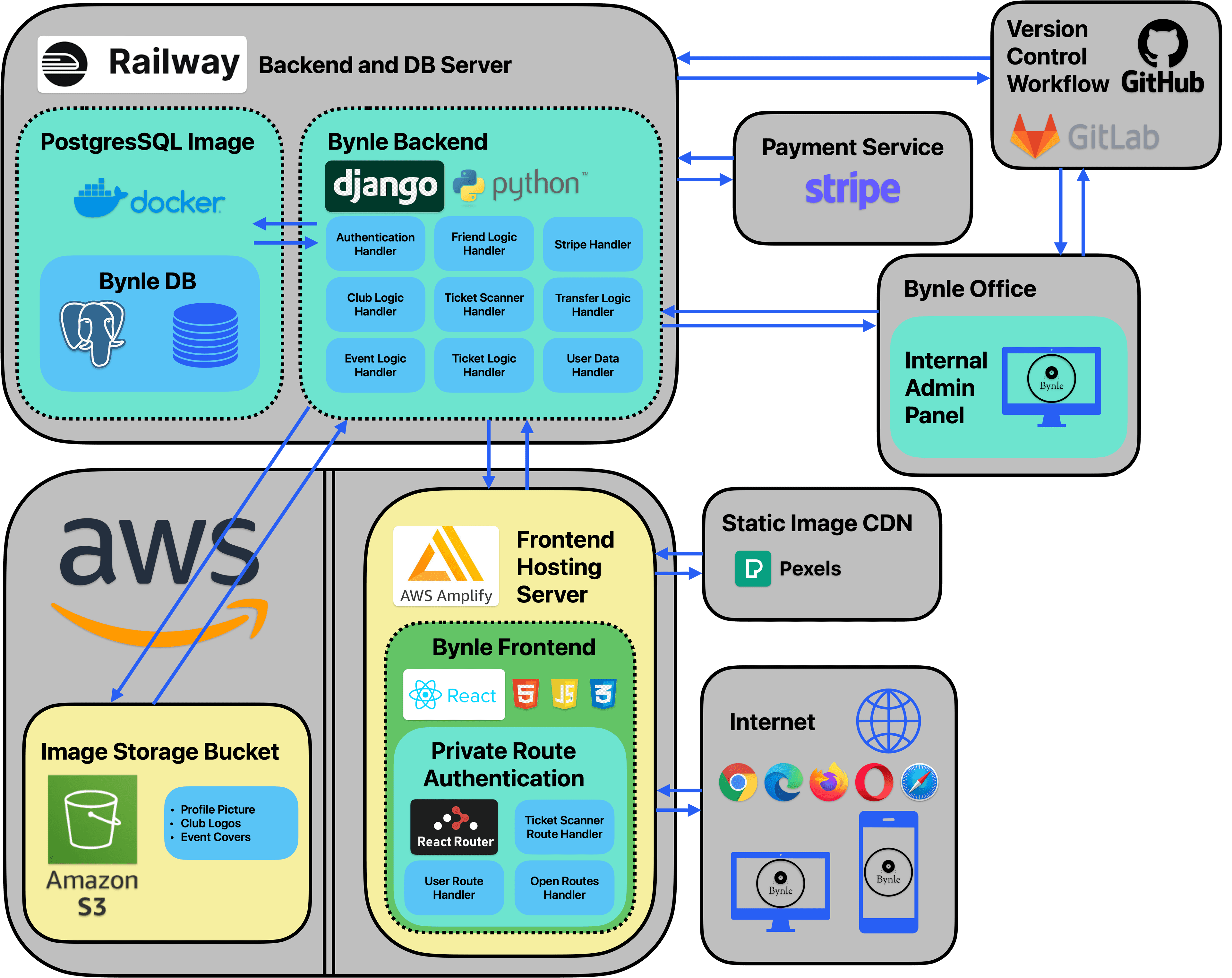 - Ticketing System: Securely handles ticket purchases and transfers through Stripe, including web-hooks for real-time payment processing.